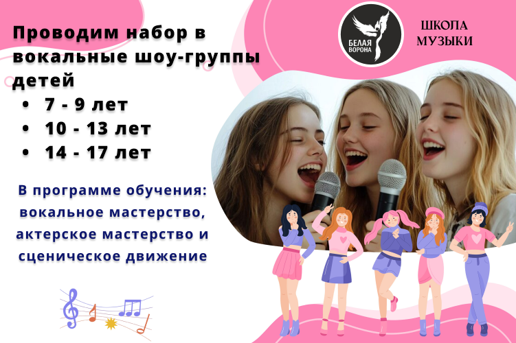 Мы открываем набор в наши вокальные шоу-группы! Это не просто уроки пения. Это — полное погружение в мир музыки и зрелища.